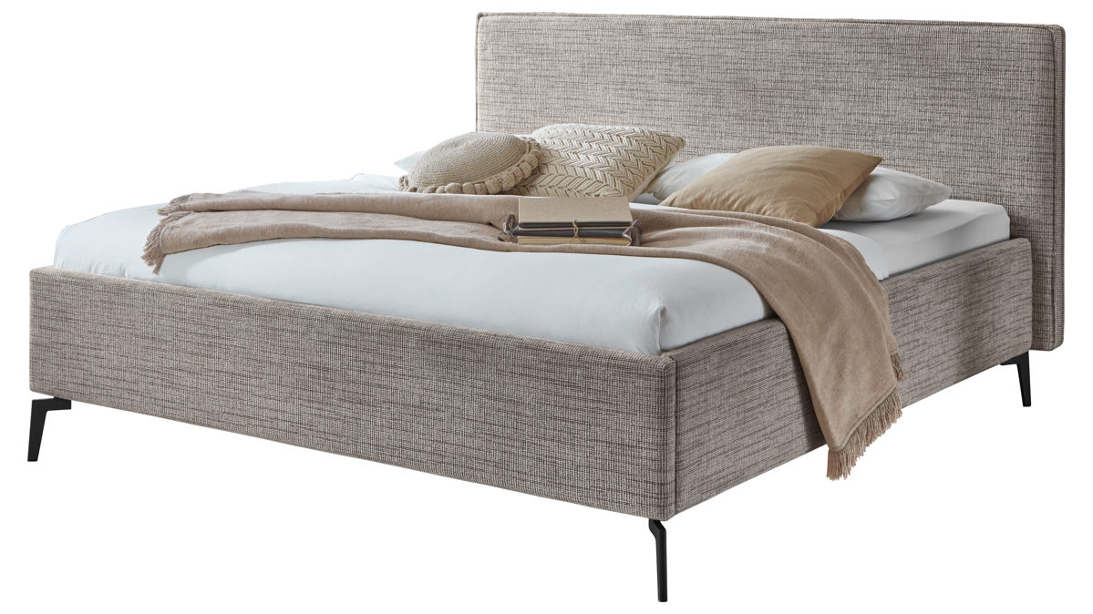 toffeefarben melierter Stoffbezug und mattschwarze Metallfüße