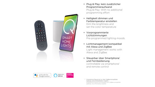 steuerbar über Smartphone und Fernbedienung, mit Alexa und ZigBee® kompatibles Lichtmanagement