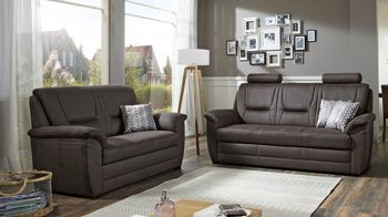 • Die Abbildung zeigt ein Wohnbeispiel, welches auch Dekoration sowie separat erhältliches Zubehör enthält. Im Lieferumfang enthalten sind ein Zweisitzer und ein Dreisitzer ohne Extras.