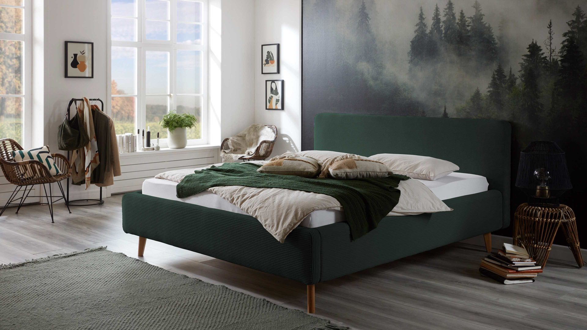 dunkelgrüner Breitcord Poso 14 & Holzfüße - Liegefläche ca. 180 x 200 cm