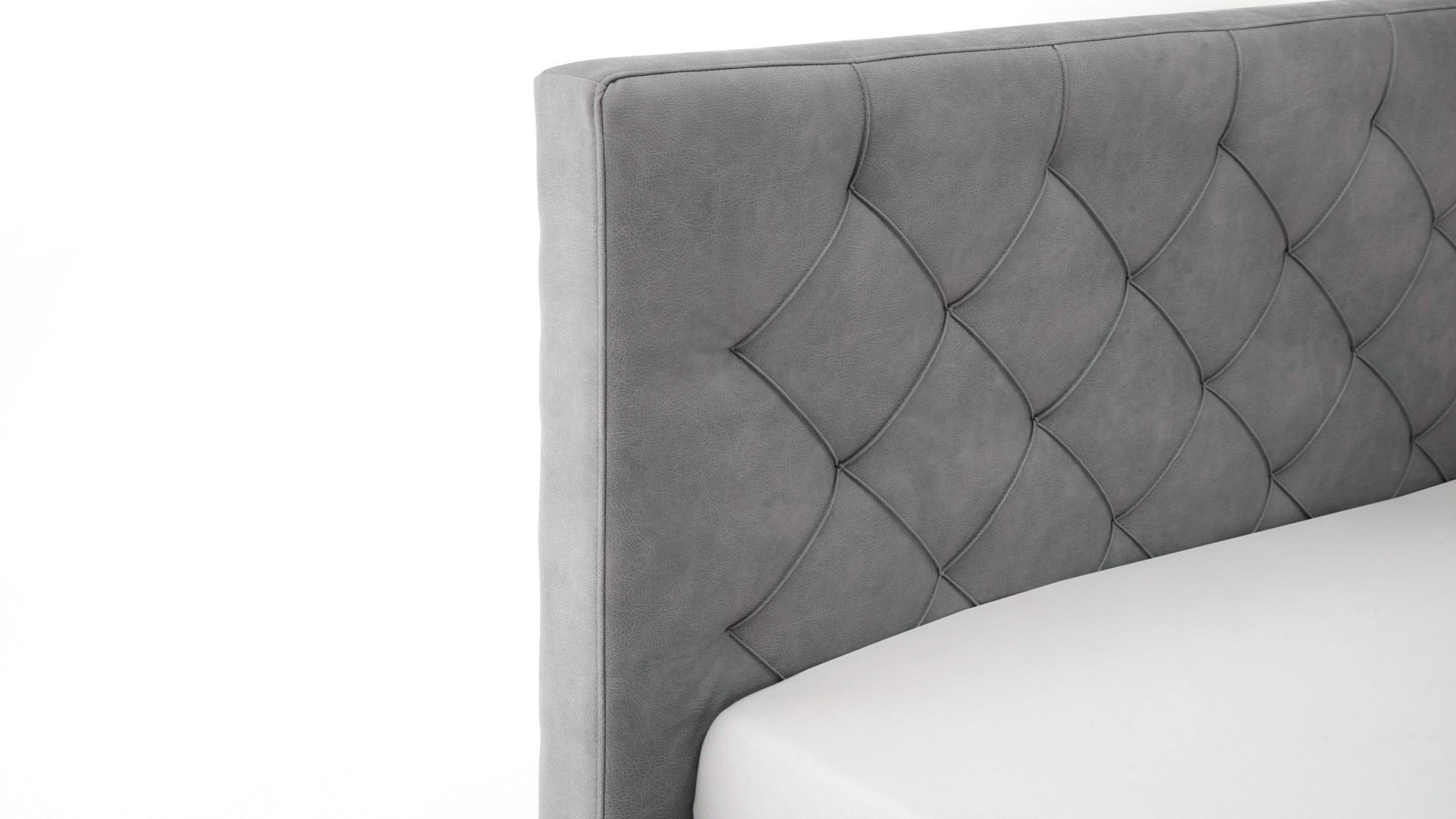 Das Polsterbettgestell San Remo bringt einen zeitlosen Chic mit. Sein hellgrauer Mikrofaserbezug Bulus 32 trifft auf Metallfüße in einem hellen Chrom-Ton. Abgerundet wird das edle Design von dem gesteppten Kopfteil mit Rautenmuster. Es entsteht ein stilvoller Look voll frischer Eleganz.