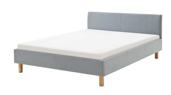 Mit den eichefarbenen Holzfüßen und dem eisblauen Flachgewebebezug bringt das Polsterbettgestell Mattis maritimes Flair in Ihr Schlafzimmer.