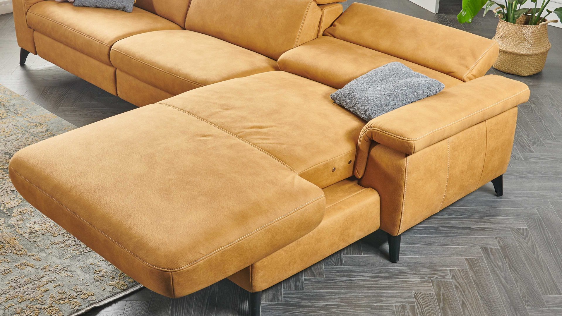 Über zwei Motoren und mittels Kabel-Handschalter lassen sich Rückenlehne, Sitz und Fußstütze des jeweiligen Polstermöbels auf Knopfdruck stufenlos verstellen. In der Endposition können Sie Ihre Beine komplett ausstrecken und beim Fernsehen oder Lesen auf dem Sofa besonders entspannt sitzen.
