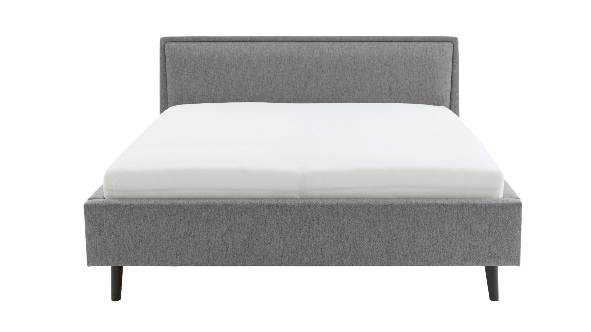 Das Polsterbettgestell Frieda mit Bettkasten verkörpert modernen Komfort. Mit dem grauen Stoffbezug und den schwarzen Holzfüßen präsentiert es sich elegant und gemütlich designt. Die Bettseiten sind genauso wie das Polsterkopfteil glatt bezogen. Letzteres ist eine angenehm weiche Rückenlehne, wenn Sie abends im Bett vor dem Schlafen noch entspannt in Ihrem Buch lesen oder fernsehen möchten.