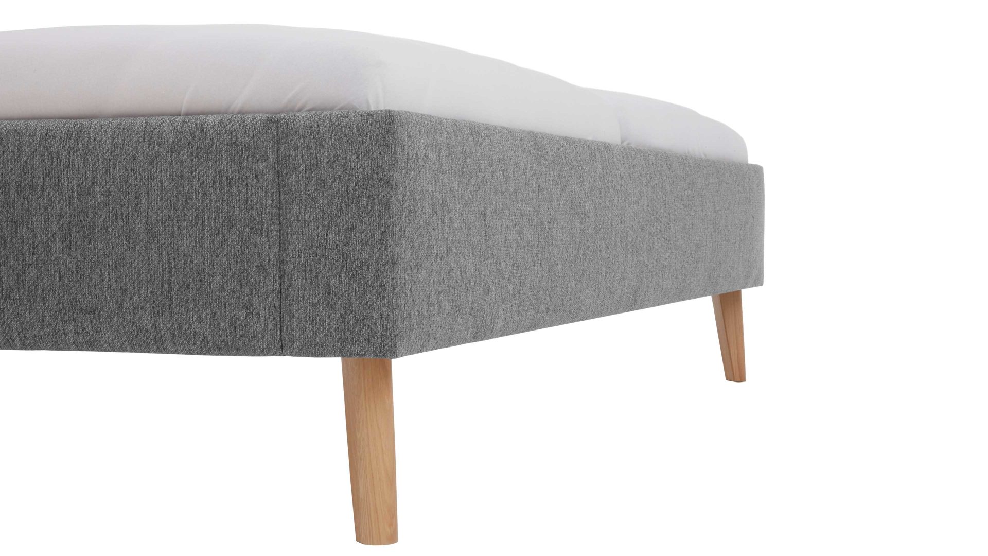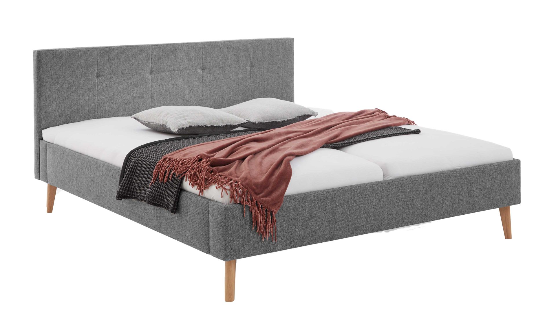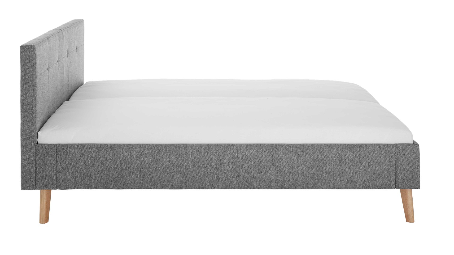 Das Polsterbettgestell Jazz ist gemütlich und stilvoll designt. Mit dem edlen grauen Stoffbezug und den eichefarbenen Holzfüßen strahlt es Eleganz mit einer Prise Natürlichkeit aus. Zu den Höhepunkten gehört das gesteppte Polsterkopfteil. Es verleiht dem Bett das gewisse optische Etwas und gibt Ihnen beim Lesen oder Fernsehen eine bequeme Anlehnmöglichkeit. Die Bettseiten sind glatt bezogen.