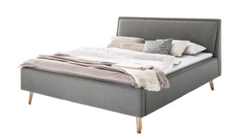 Das Polsterbettgestell Mattis begeistert durch die elegante Optik sowie die hervorragende Material- und Verarbeitungsqualität. Es kombiniert einen hellgrauen Flachgewebe-Bezug mit eichefarbenen Holzfüßen. Sowohl die Bettseiten als auch das Polsterkopfteil sind glatt bezogen. Letzteres lädt Sie ein, sich anzulehnen, wenn Sie abends im Bett vor dem Schlafen noch fernsehen oder in einem Buch lesen.