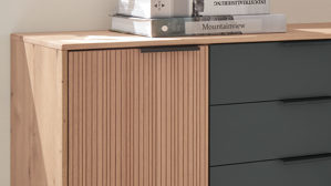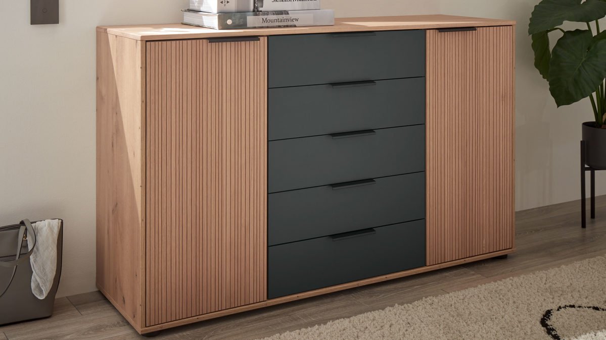 Eiche Bianco & Graphit - zwei Türen, fünf Schubladen, Breite ca. 141 cm