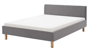 Mit den eichefarbenen Holzfüßen und dem hellgrauen Flachgewebebezug bringt das Polsterbettgestell Mattis modernes Flair in Ihr Schlafzimmer.