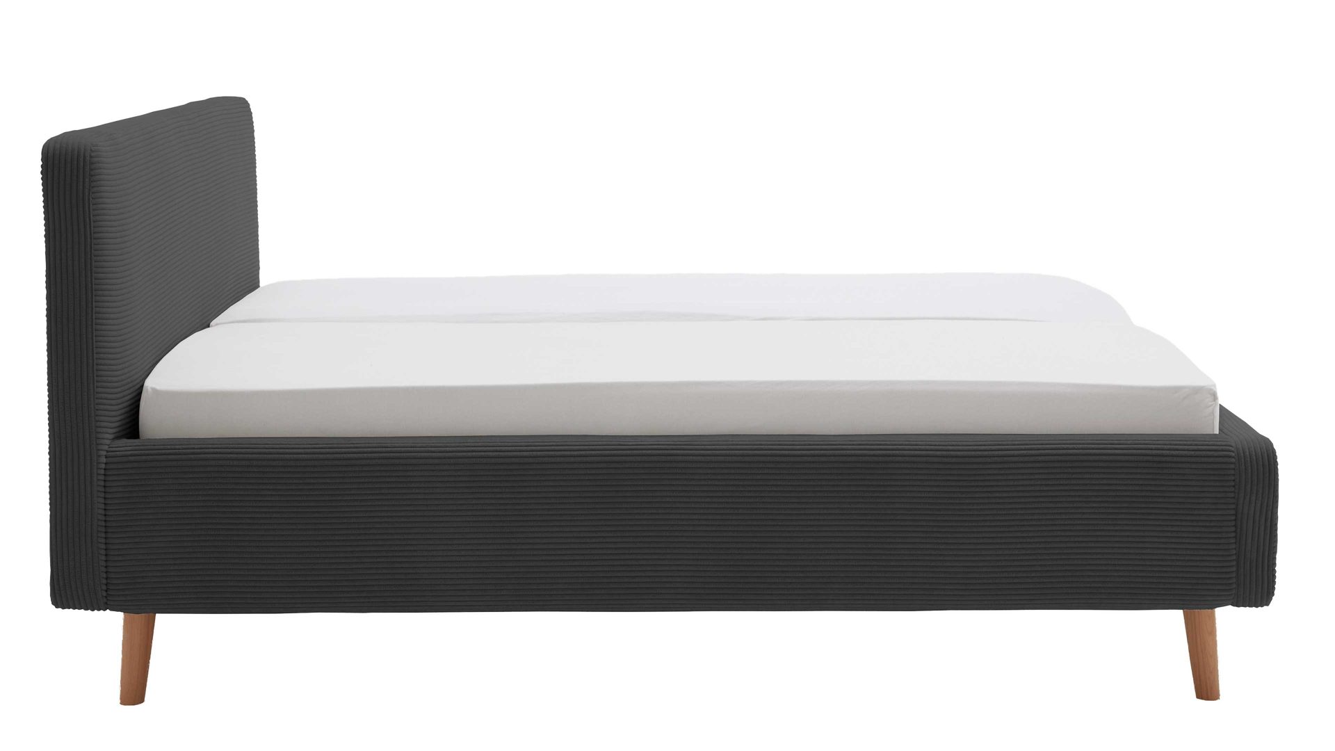 Das Polsterbettgestell Mattis mit Bettkasten begeistert durch die elegante Trendoptik sowie die exzellente Material- und Verarbeitungsqualität. Es kombiniert eichefarbene Holzfüße mit einem anthrazitfarbenen Breitcordbezug. Sowohl die Bettseiten als auch das Polsterkopfteil sind glatt bezogen. Letzteres lädt Sie ein, sich anzulehnen, wenn Sie abends im Bett vor dem Schlafen noch fernsehen oder in einem Buch lesen.