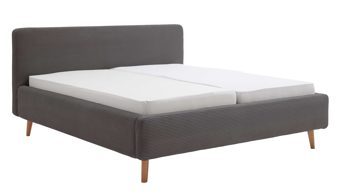 Das Polsterbettgestell Mattis begeistert durch die elegante Optik sowie die hervorragende Material- und Verarbeitungsqualität. Es kombiniert einen anthrazitfarbenen Flachgewebe-Bezug mit eichefarbenen Holzfüßen. Sowohl die Bettseiten als auch das Polsterkopfteil sind glatt bezogen. Letzteres lädt Sie ein, sich anzulehnen, wenn Sie abends im Bett vor dem Schlafen noch fernsehen oder in einem Buch lesen.