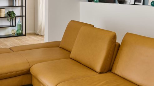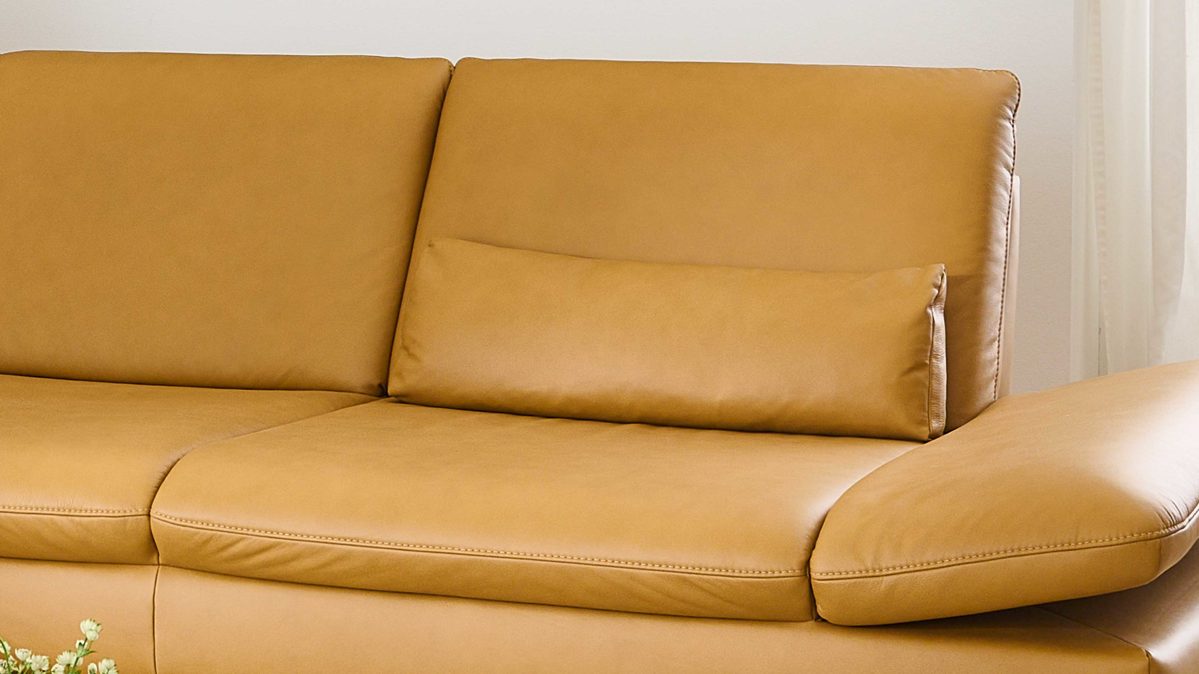 kurkumafarbener Semi-Anilin-Lederbezug mit softem Griff und feiner Lederstruktur