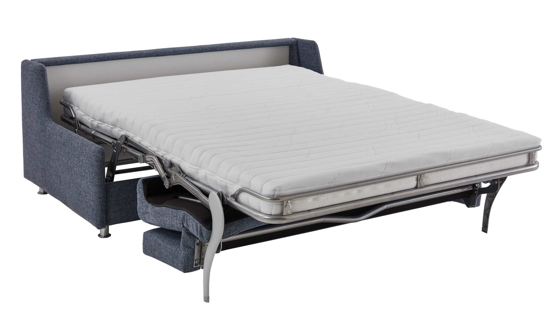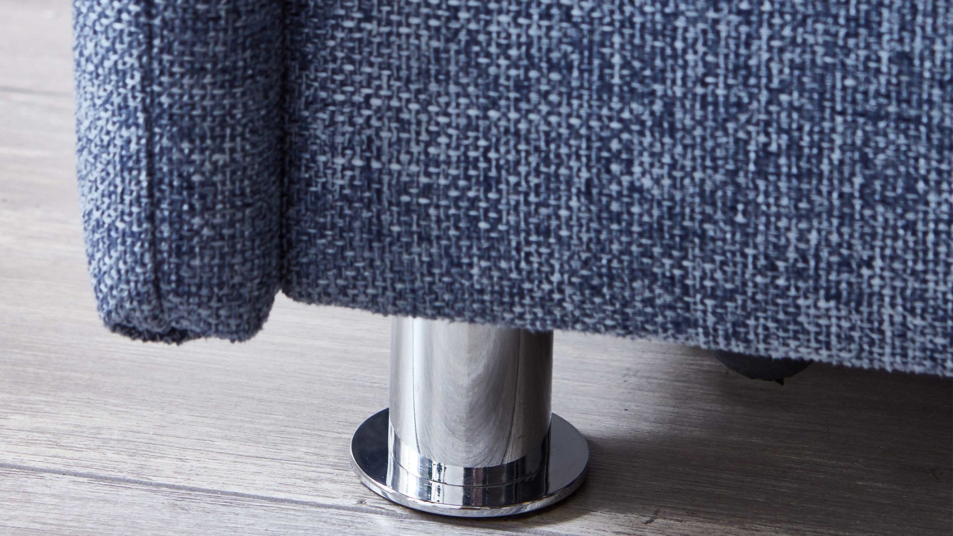 Das Schlafsofa Grande ist die perfekte Lösung für alle, die auf der Suche nach einem stilvollen und funktionalen Möbelstück sind. Mit seinem graublauen Stoffbezug und den chromfarbenen Metallzylinderfüßen ist es nicht nur ein Blickfang in jedem Raum, sondern auch äußerst bequem.