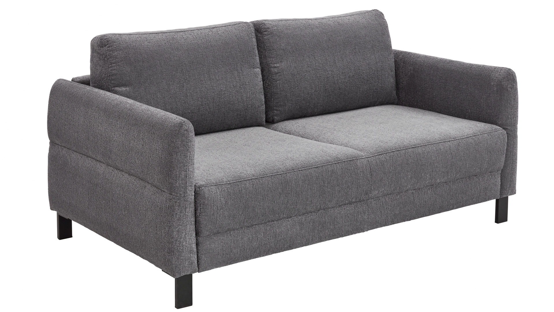 Entdecken Sie das Schlafsofa Doria - eine perfekte Kombination aus Eleganz und Funktionalität. Mit seinem anthrazitfarbenen Stoffbezug und den schwarzen Metallfüßen ist dieses Sofa ein echter Blickfang in jedem Raum. Die kubischen Rückenkissen sorgen für einen modernen Look und laden zum Entspannen ein.