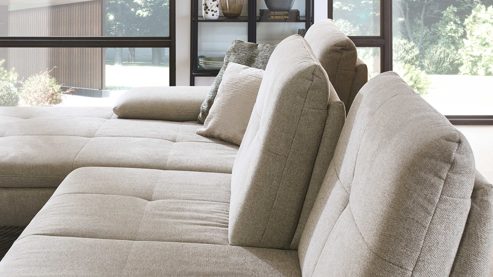 Sofas mit oder ohne Funktionen und in vielen Bezugvarianten erhältlich, die Rückseiten sind immer im Originalstoff bezogen