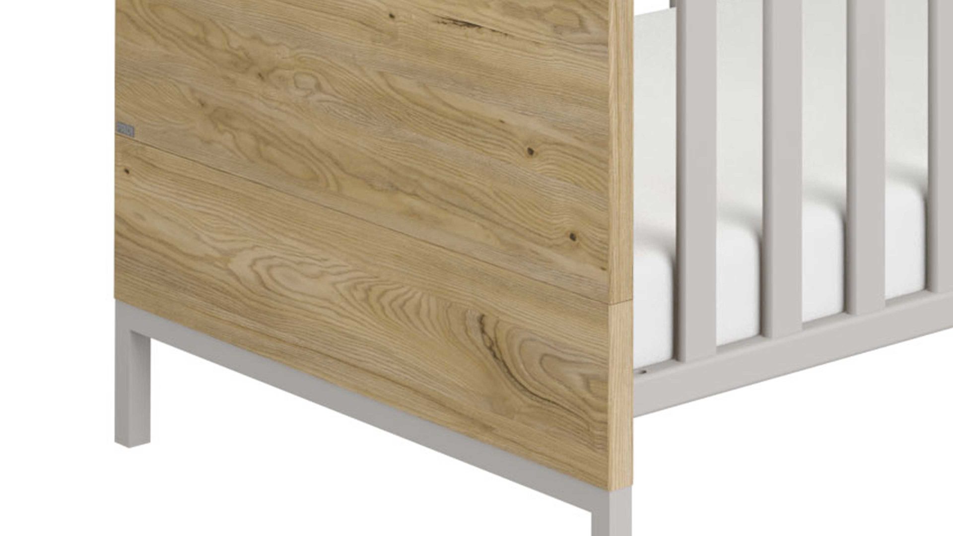Das hochwertige PAIDI Babybettgestell Benne verbindet Montana-Eiche-Nachbildung mit kieselgrauen Melaminoberflächen. Letztere zeichnen sich vor allen Dingen durch ihre Lichtechtheit sowie die besonders ausgeprägte Kratz- und Stoßfestigkeit aus. Darüber hinaus sind sie sehr pflegeleicht. Der Holzton verströmt warmen, natürlichen Charme und harmoniert wunderbar mit dem Kieselgrau. Zusammen sorgen die Nuancen für eine moderne und elegante Optik.