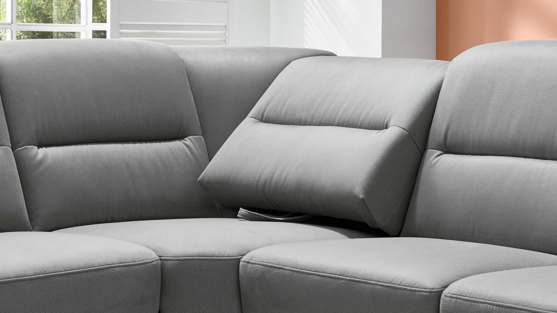 Der Relaxrücken RR ist eine Mehrpreis-Funktion für die Eckelemente des Modulmaster-Modells MM-PP1009. Es handelt sich dabei um eine manuelle Rückenverstellung, die den Komfort spürbar erhöht. Nachdem Sie die Rückenlehne rechts oder links nach vorne gezogen haben, können Sie zum Entspannen auf dem Sofa eine besonders bequeme Sitzhaltung einnehmen.