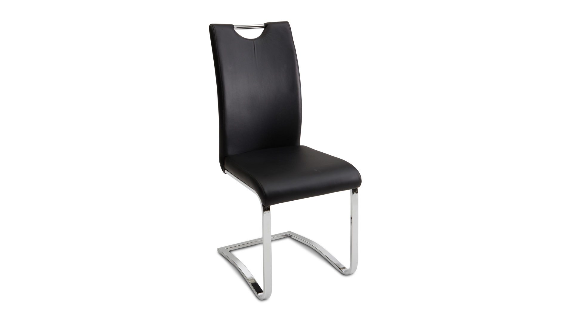 Der schicke Schwingstuhl Köln mit schwarzem Kunstlederbezug sorgt für ein modernes Wohngefühl in Ihrer Wohnlandschaft. Das Material erweist sich als besonders pflegeleicht.