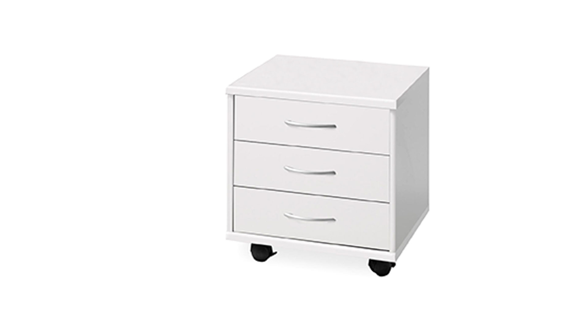 Der Rollcontainer Optimus weiß optisch wie funktional auf ganzer Linie zu überzeugen. Dank der weißen Kunststoffoberflächen wirkt das Design sehr schlicht, klassisch und elegant. Zudem sorgt die schnörkellose Gestaltung dafür, dass sich der Bürocontainer in verschiedene Einrichtungsstile perfekt einfügt. Akzente setzen die edel-chromfarbenen Griffe, die sich abheben und dennoch harmonisch mit dem strahlenden Weiß verbinden.
