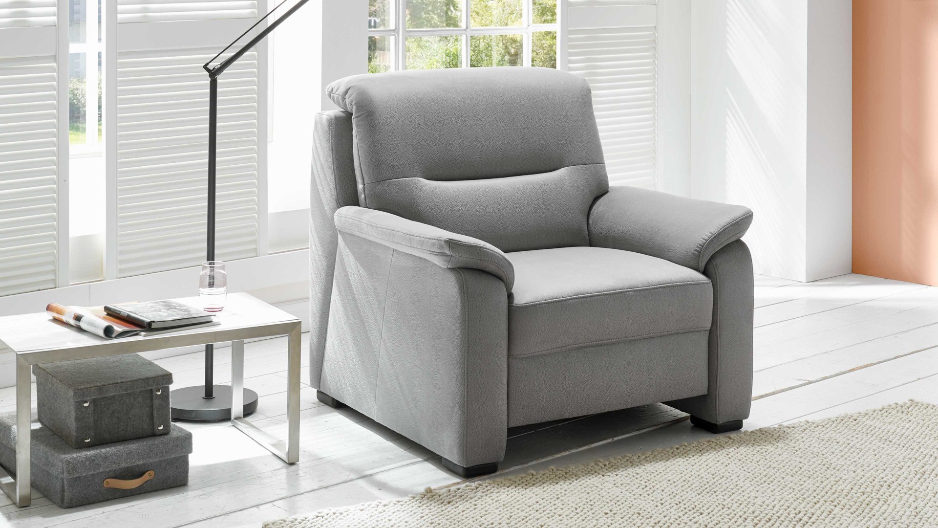 Gästen bieten Sie den Sessel, den Sie mit dem großen Typenplan und der großen Bezugauswahl Ihren Wünschen anpassen, als Sitzgelegenheit an. Praktisch für Sie: Passende Sofas sowie weitere Funktionen und Ergänzungen sind gegen Mehrpreis bestellbar.