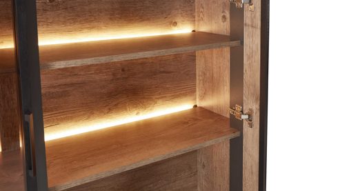 inklusive LED-Streifenbeleuchtung mit fest verbauten, nicht austauschbaren Leuchtmitteln - bedienbar über einen Touchbutton an der Außenseite des Schranks