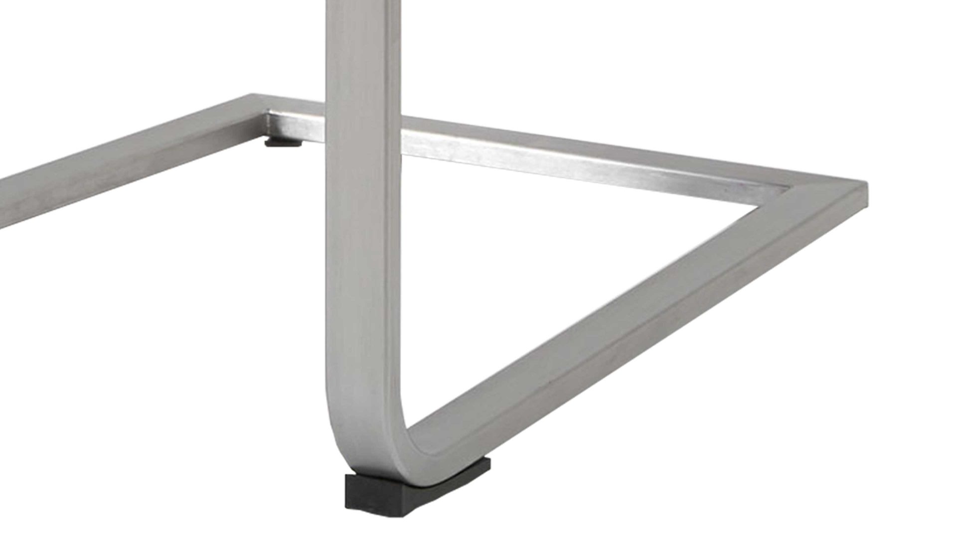 Dabei überzeugt der geschmackvolle Freischwinger mit vielfältigen Einsatzmöglichkeiten. Sie stellen den Lederstuhl entweder an Ihren Tisch in der Küche oder an Ihren Esszimmertisch im Essbereich. In jedem Raum komplettiert der Esszimmerstuhl mit dem steinfarbenen Lederbezug und dem gebürstetem Edelstahlgestell aus Flachstahl ausgezeichnet bereits vorhandene Möbel.