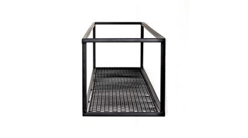 Dieses hochwertige Wandregal repräsentiert die Eleganz schlichter Modernität. Aus einem klassisch mattschwarz lackierten Metallgeflecht und Vierkantrohr-Metallrahmen gefertigt, erscheint es puristisch und ist dazu enorm robust und langlebig. Seine Maße betragen ca. 70 x 16 x 16 cm (LxHxT).