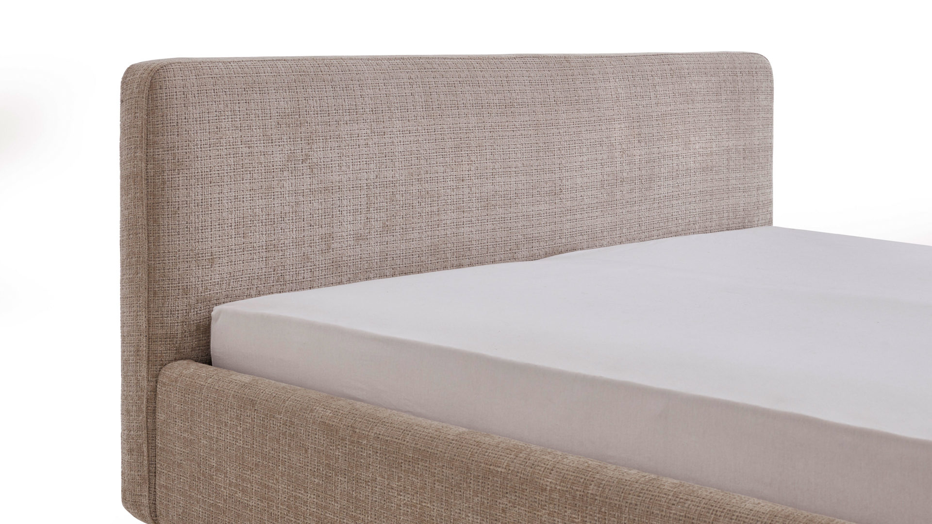 Das Polsterbettgestell Mattis begeistert durch die elegante Optik sowie die hervorragende Material- und Verarbeitungsqualität. Es kombiniert einen beigefarbenen Chenille-Bezug mit eichefarbenen Holzfüßen. Sowohl die Bettseiten als auch das Polsterkopfteil sind glatt bezogen. Letzteres lädt Sie ein, sich anzulehnen, wenn Sie abends im Bett vor dem Schlafen noch fernsehen oder in einem Buch lesen.