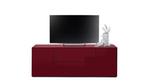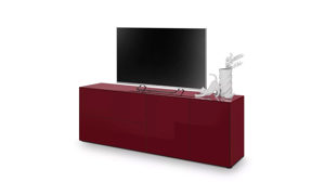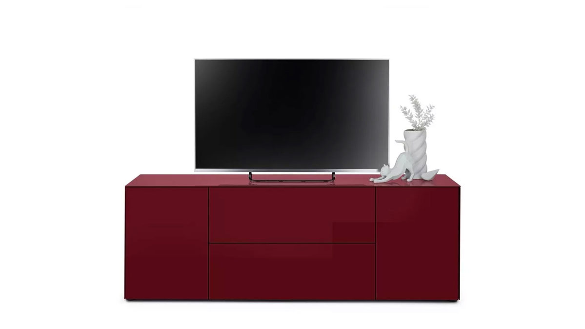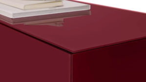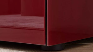 Front und Korpus aus bordeauxrotem glänzendem Glas