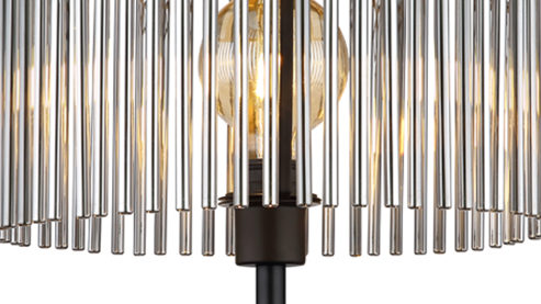 ein zylinderförmiger Schirm aus rauchfarbenen Glasstäben