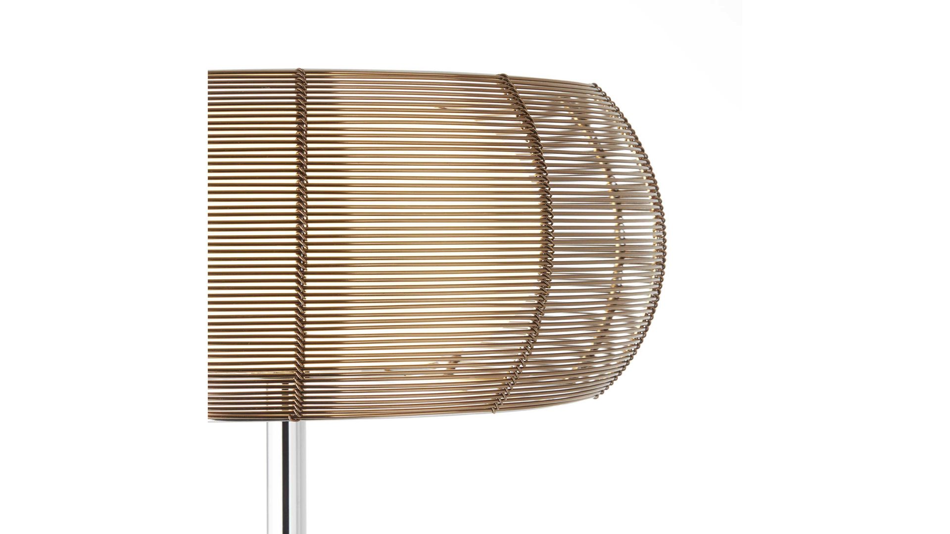 Die Standleuchte aus der Leuchtenserie ist auch in einer verchromten Variante erhältlich, falls Sie eine auffälligere Ausführung bevorzugen. Die Leuchtmittel sind im Lieferumfang der Stehlampe nicht enthalten.