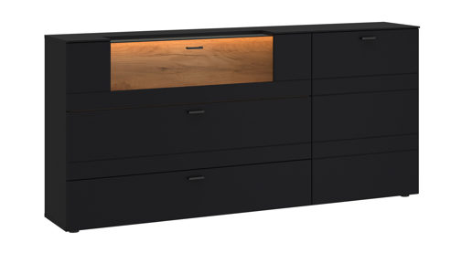 matt Schwarze Oberfläche kombiniert mit Coast Evoke Eiche Holznachbildung