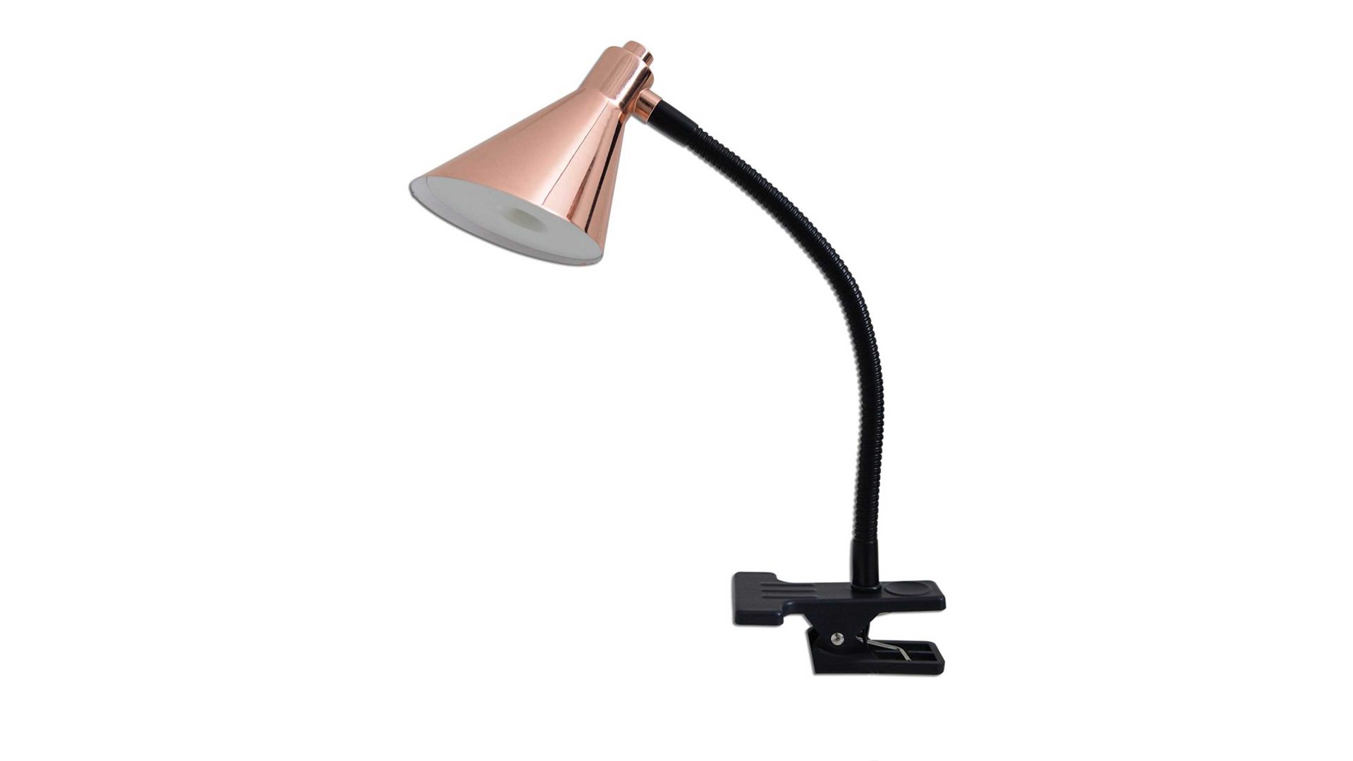 Die näve LED-Klemm-Tischleuchte Pinhead ist hochwertig verarbeitet und modern-elegant designt. Sie offenbart eine klassisch-schwarze Basis und einen edel-kupferfarbenen Metall-Lampenschirm. Das Material präsentiert sich enorm robust und widerstandsfähig und macht dabei optisch einiges her. Die spezielle Farbgebung verleiht der Klemmlampe ein nobel anmutendes Flair, das sich in den jeweiligen Raum überträgt. Praktischerweise lässt sich die Leuchte in verschiedenste Einrichtungsstile wunderbar stimmig integrieren.
