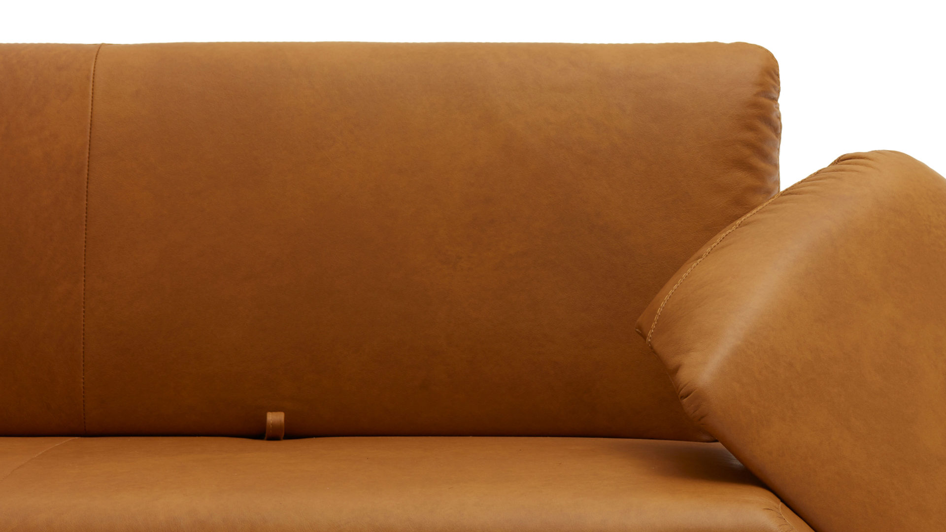 Sie setzt sich aus einem schwarz pulverbeschichteten Metallgestell mit Struktur und einem curcumafarbenen Lederbezug zusammen. Dank der perfekt aufeinander abgestimmten Materialien und Farben erscheint die Dinerbank absolut harmonisch und modern. Des Weiteren sorgen die geradlinige Formensprache, der hinten ebenfalls lederbezogene Rücken und die schicken Zierkappnähte für besonders nobles Flair.