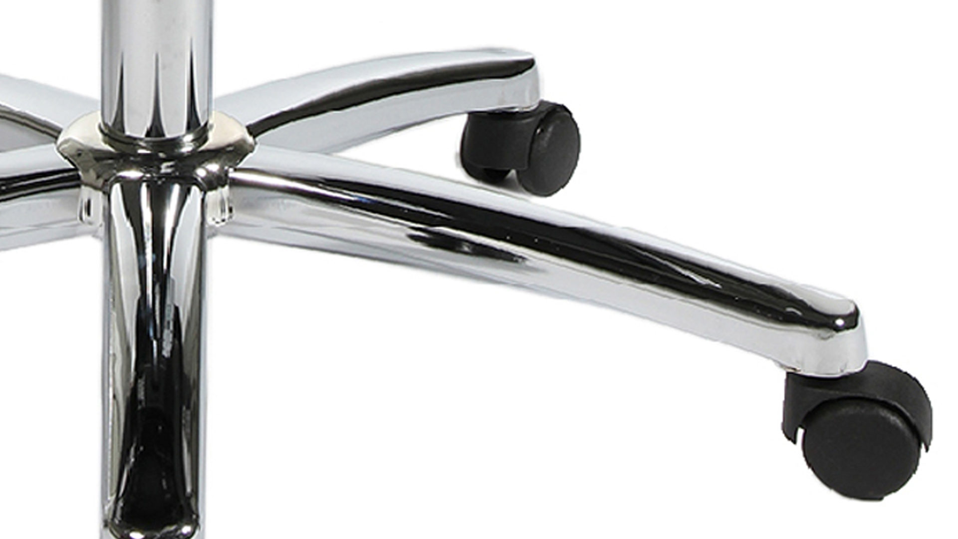 Mit den lastabhängig gebremsten Sicherheitsdoppelrollen können Sie den Bürostuhl mühelos von A nach B schieben.