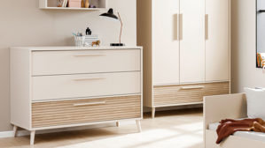 Kreideweiß & Nebraska Eiche – vier Schubladen