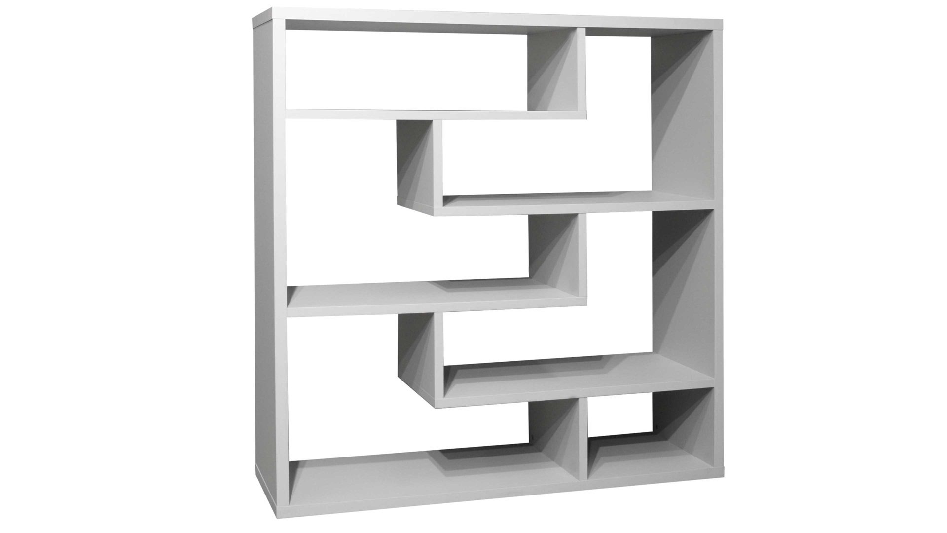 Die kreidegrauen Mattlackoberflächen und die verspielte, aber dennoch harmonische Anordnung der Böden verleihen dem Raumteiler eine sehr moderne und elegante Ausstrahlung. Er bietet Ihnen insgesamt sechs Fächer, in denen Sie etwa Bücher und Deko aufbewahren können. Doch auch Aktenordner sind hier gut aufgehoben. Die Maße des Regals belaufen sich auf ca. 130 x 134 x 40 cm (BxHxT).