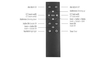 | Verstellbarkeit und Funktion: | dimmbar Fernbedienung Memoryfunktion CCT | Lichtmanagement | |