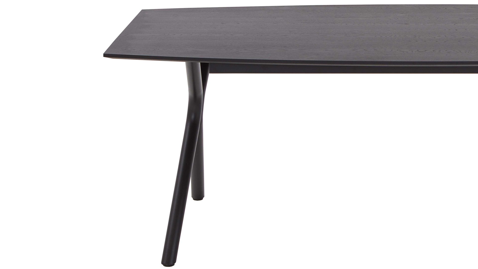 Der qualitativ hochwertige NIEHOFF Esstisch Dacapo verkörpert moderne Eleganz und Kreativität. Für einen stabilen Stand sorgt das schwarze Soft-X-Metallgestell. Dieses harmoniert ausgezeichnet mit der schwarzen Echtholzfurnierplatte in Eiche. Als optisches Highlight fungiert die Bootsform der Tischplatte. Sie ist ein absoluter Eyecatcher und bringt außergewöhnlich maritimes Flair ins Esszimmer. Die Maße des Speisetisches belaufen sich auf ca. 220 x 100 cm (BxL).