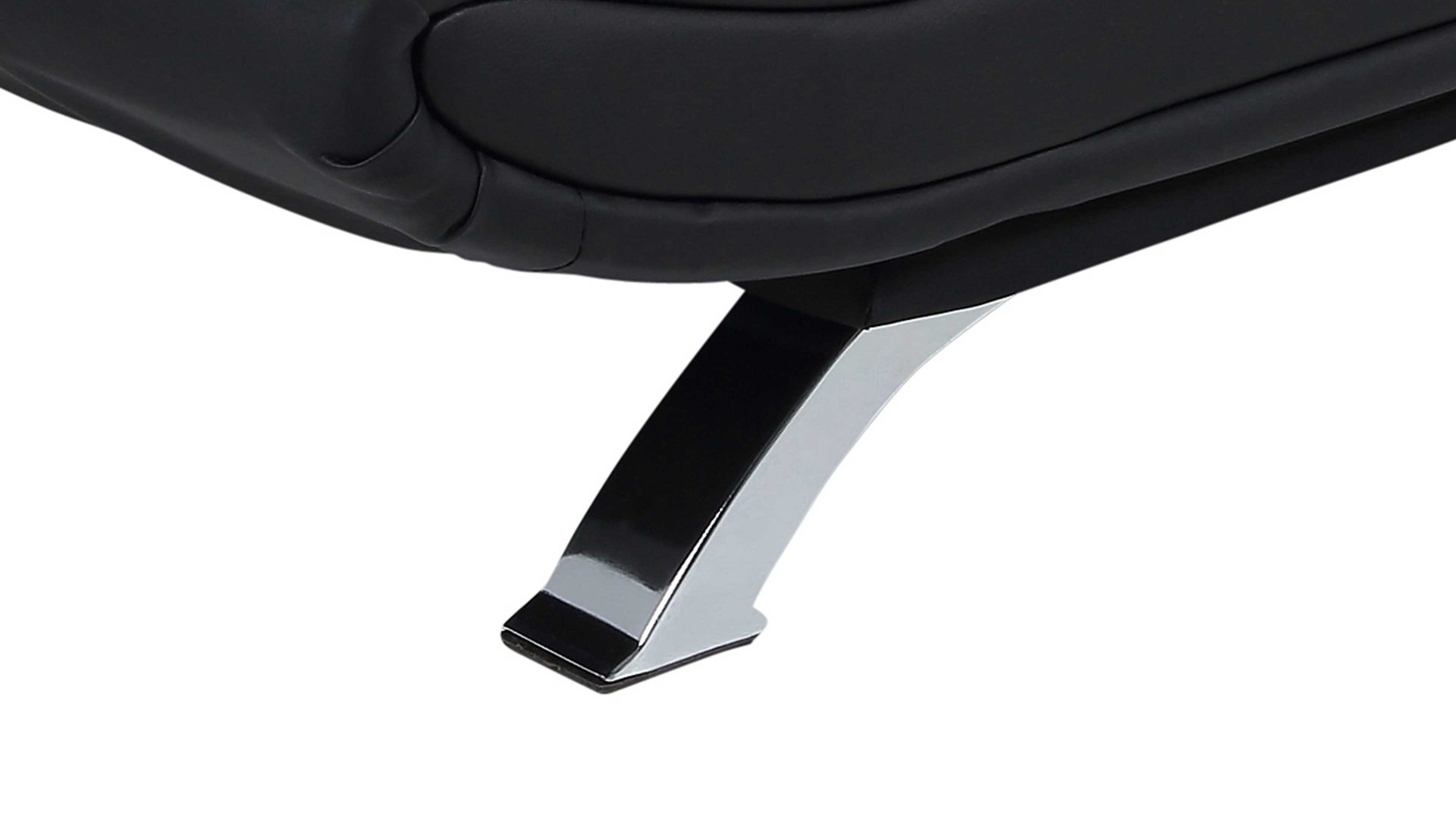 Das Schlafsofa Faith beeindruckt mit seinem modernen, eleganten Design sowie der Funktionalität, die es zu einem vielseitigen Polstermöbel macht. Für die nötige Standstabilität sorgen verchromte Metallfüße. Der schwarze Kunstlederbezug wirkt besonders edel und fühlt sich zudem sehr angenehm an. Einen gelungenen Akzent setzt die Quersteppung der Sitz- und Rückenfläche. Der Rücken der Couch ist mit schwarzem Nesselstoff bezogen.