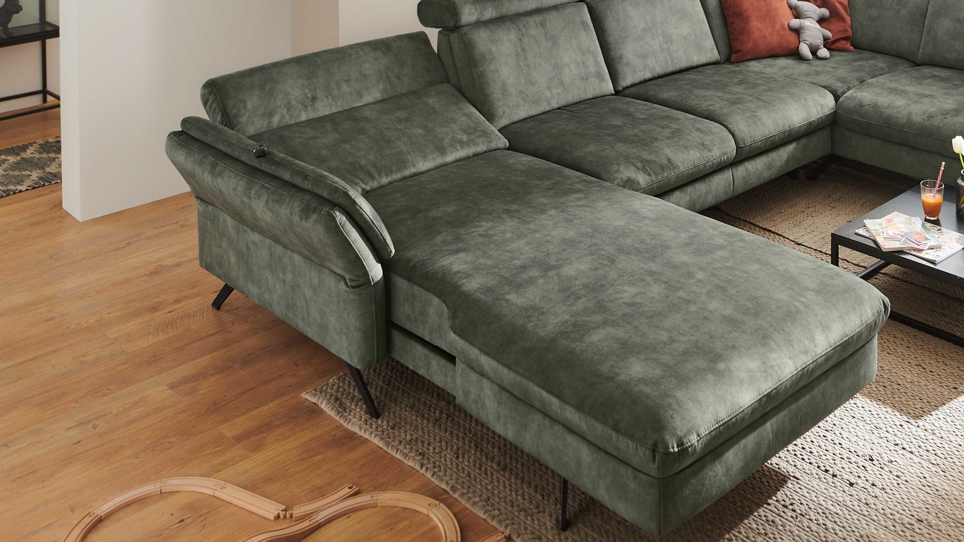 moosfarbener Velours Amira & schwarze Metallfüße - Stellfläche ca. 346 x 227 cm