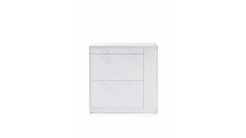 Der Schuhkipper Optimus ist enorm stilvoll designt und ausgesprochen praktisch. Mit den strahlend weißen Kunststoffoberflächen bringt der Schuhschrank moderne Eleganz in den Raum, in dem Sie ihn platzieren. Akzente setzen die alufarbenen Griffe - sie heben sich einerseits ab, verbinden sich auf der anderen Seite aber auch perfekt mit dem Weiß des attraktiv gestalteten Korpus.
