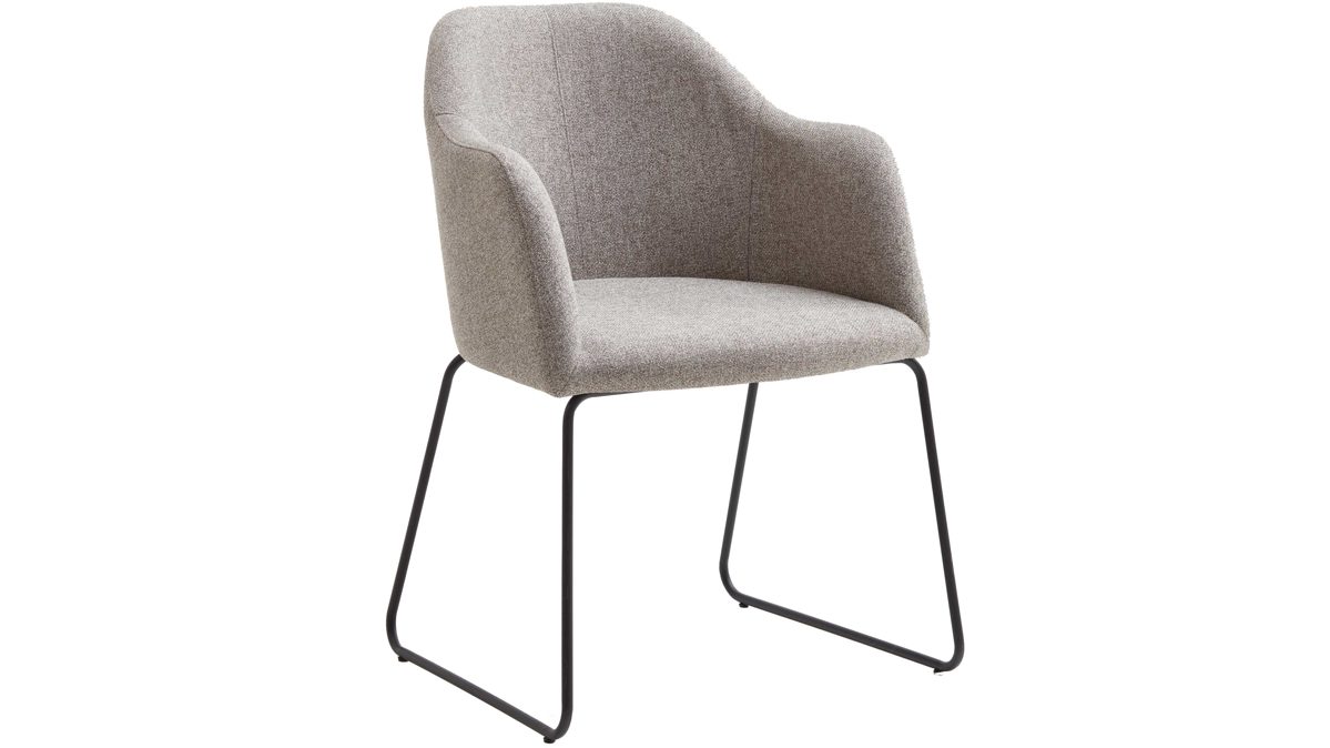 Darüber hinaus weiß er in puncto Komfort zu überzeugen. Ein schwarzes Stahldraht-Kufengestell bildet die robuste Basis. Das widerstandsfähige Material sorgt für die nötige Stabilität und die klassische Farbgebung bringt edles Flair in den Raum. Attraktiv abgerundet wird der Polsterstuhl durch den schlammfarbenen Webstoffbezug. Die trendige Farbe wirkt äußerst elegant und schafft durch die helle Nuance einen interessanten Kontrast zum Gestell. Einen feinen Akzent setzt die Steppnaht im Rücken des Schalensitzes.