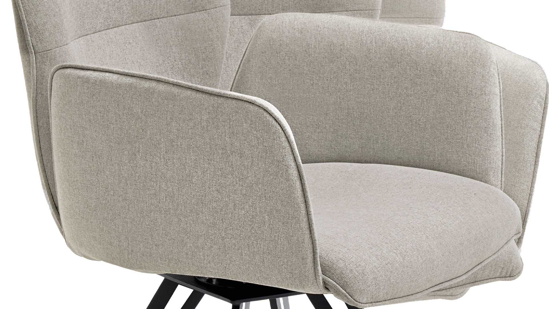 Neben den optischen Vorzügen begeistern auch die funktionalen Merkmale des schicken Designer-Armlehnstuhls. Durch die feine Haptik des Bezugs und die Armlehnen genießen Sie allerhöchsten Sitzkomfort. Darüber hinaus ist der Schalenstuhl um 180 Grad drehbar und mit einer Rückholfunktion ausgestattet. Diese Charakteristika verstärken die an sich schon ausgeprägte Bequemlichkeit, was beispielsweise dann spürbar wird, wenn Sie sich der Person, die am Tisch neben Ihnen sitzt, frontal zuwenden möchten.