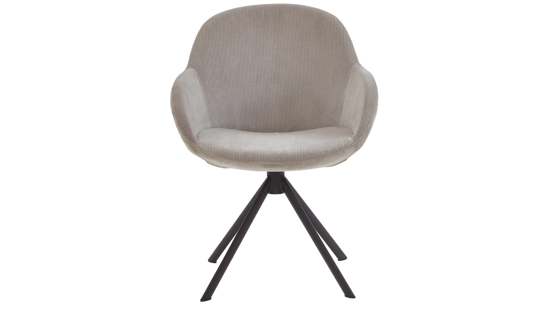 Der hochwertige NIEHOFF Armlehnstuhl Dacapo verkörpert moderne Eleganz und Gemütlichkeit. Mit dem mattschwarz lackierten Stativgestell aus robustem Eisen sowie dem trendigen grauen Cordbezug überzeugt er sowohl optisch als auch qualitativ. Dank der Ergo-Schale mit Formschaum bietet der Designerstuhl für das Esszimmer extra hohen Sitzkomfort.