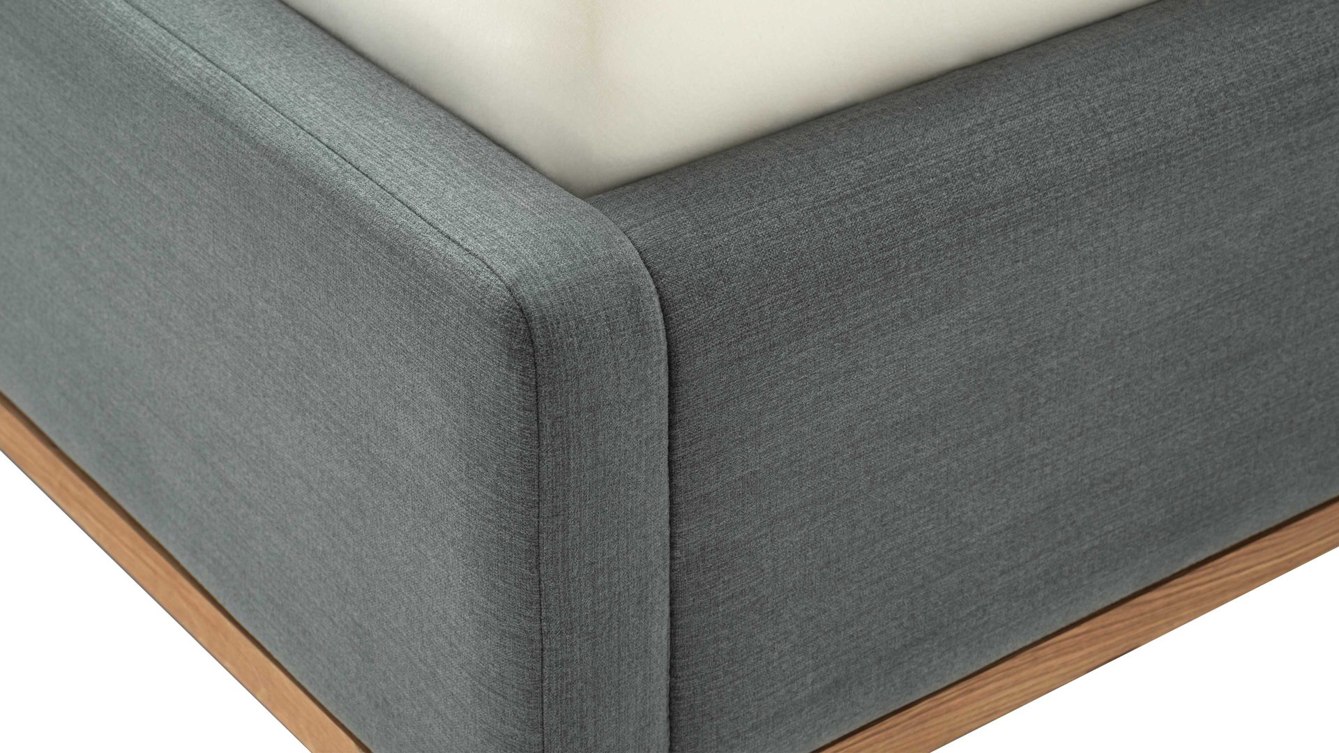 Das Highlight stellt das glatte, leicht gerundete Kopfteil dar. Dadurch erhält das Polsterbettgestell ein sanftes und besonders wohnliches Aussehen und passt zu verschiedensten Einrichtungsstilen.