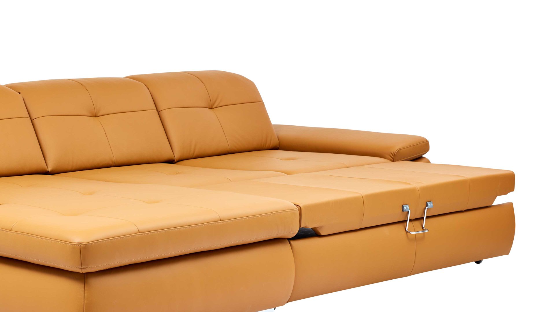 Die Bettfunktion A ist eine Mehrpreis-Ergänzung für die 2,5-Sitzer und 3-Sitzer mit einer Armlehne aus dem Modulmaster-Programm MM-PN1044. Sie ermöglicht es Ihnen, das jeweilige Sofa über den verchromten Metallgriff nach vorne auszuziehen und die Sitzfläche um ca. 205 x 145 cm (LxB) zu erweitern. Die Liegefläche der Querschläfer-Bettfunktion ist mit Nesselstoff bezogen, gegen Mehrpreis allerdings auch im Originalstoff lieferbar.