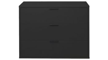 Mit ihren anthrazitfarbenen Mattlackoberflächen verkörpert die Schubladenkommode Bonnie moderne Eleganz. Schwarze Metallgriffe und praktisch höhenverstellbare Möbelgleiter runden das stilvolle Design harmonisch ab. Zu den qualitativen Höhepunkten gehören überdies die widerstandsfähigen abgerundeten Dickkanten.