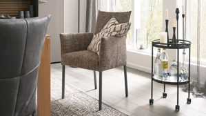 der Stuhl ist mit und ohne Armlehnen und in vielen weiteren Bezugvarianten erhältlich