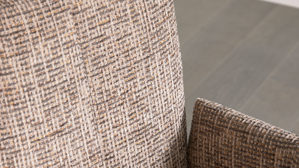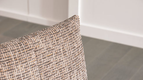 sepiafarbener, melierter Webstoffbezug und anthrazitfarbene Metallfüße