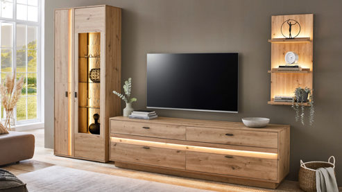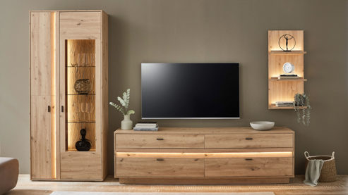nach Wunsch kombinierbare Wohnmöbel, mit LED-Beleuchtung ergänzbar